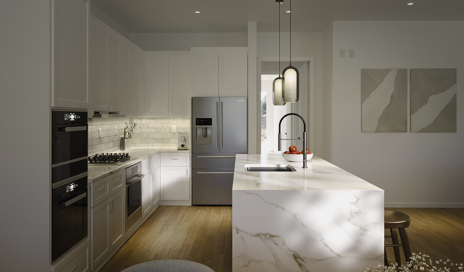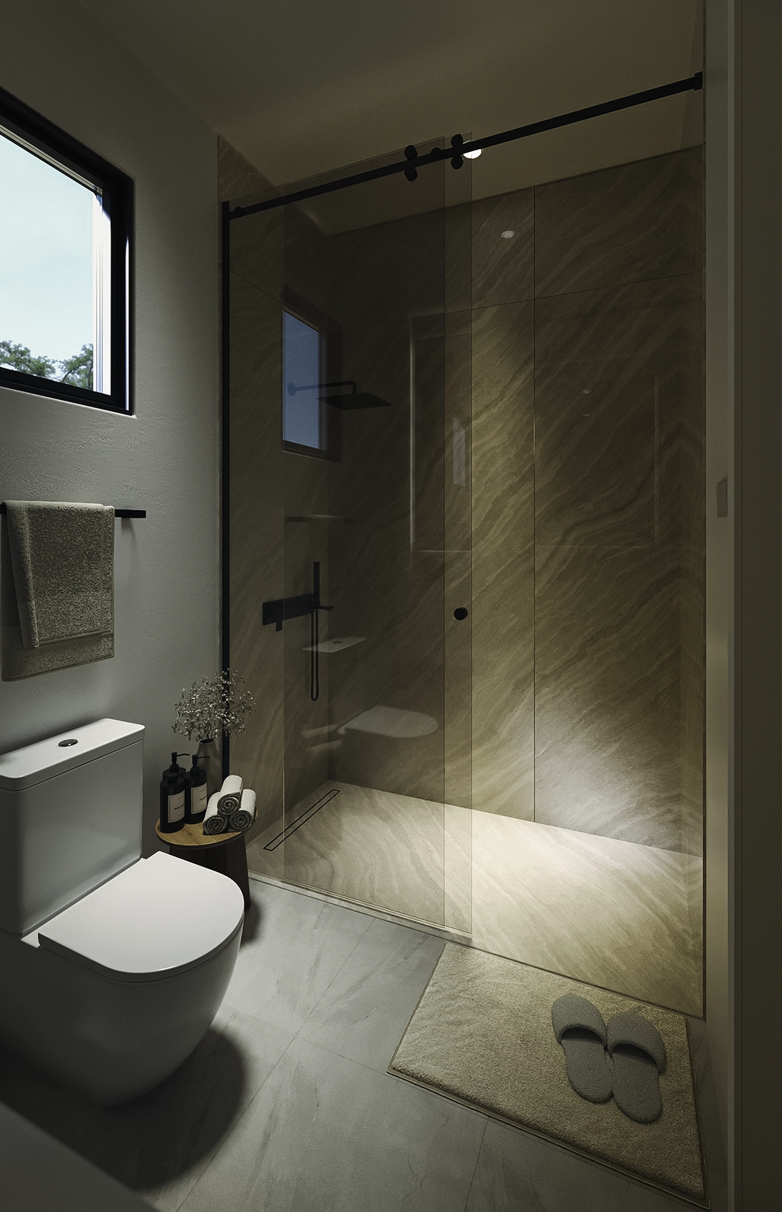 Inside the PBS models, the focus is on light and volume. We staged the interiors with minimalist furniture to maintain the sense of space. By highlighting the floor-to-ceiling windows and the natural wood finishes, the renders demonstrate a design that feels both spacious and grounded, perfect for the modern, design conscious homeowner.