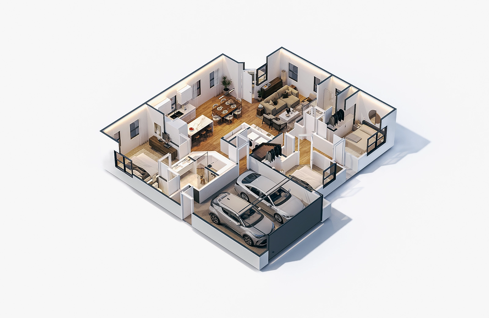 By placing these models in realistic, atmospheric environments, we helped potential buyers truly feel the “hygge” lifestyle. The visuals intentionally emphasize the large windows, open-plan spaces, and the seamless connection between the modern interior and the surrounding nature.